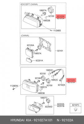921027A101 HYUNDAI Фара HYUNDAI HD160,170,270,450 (-08) правая OE