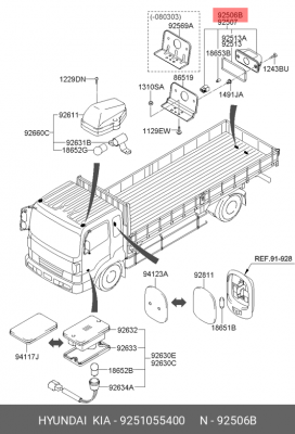 9251055400 HYUNDAI Фонарь освещения номерного знака HYUNDAI HD120,170,270 OE
