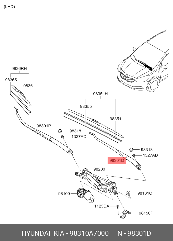 98310A7000 HYUNDAI Поводок стеклоочистителя
