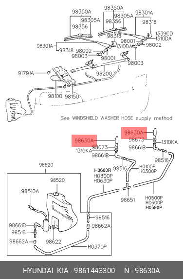 9861443300 HYUNDAI Жиклер HYUNDAI Porter омывателя OE