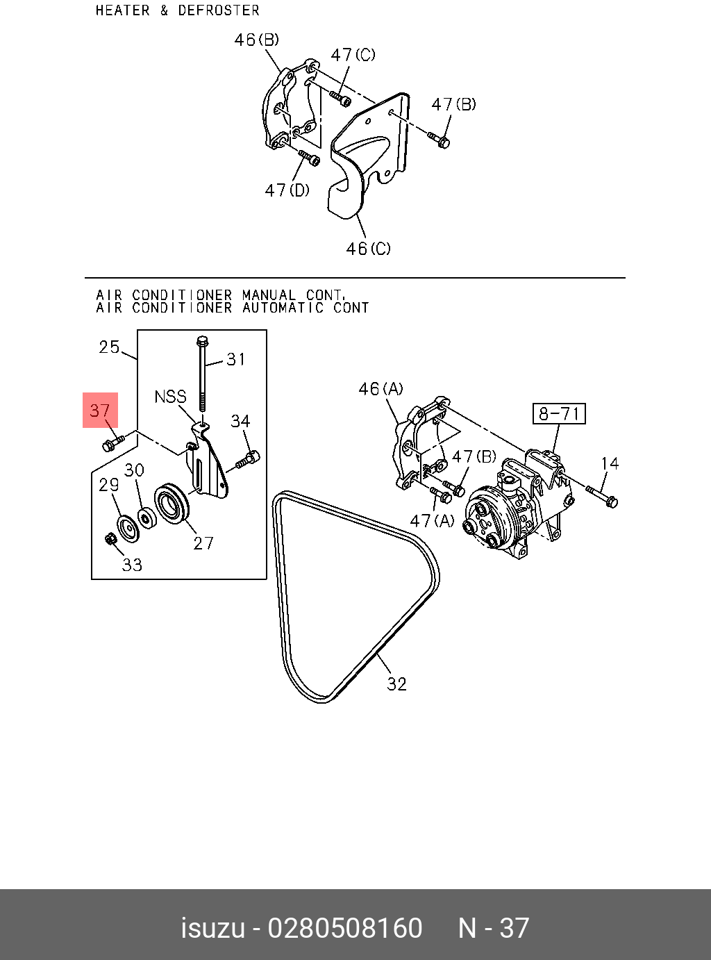 0-28050-816-0 ISUZU Болт 028050-8160 фланец m8×16