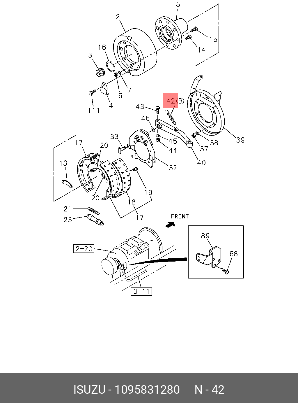 1095831280 ISUZU Механизм возврата рычага ручного тормоза 1-09583128-0 euroⅰ(china)