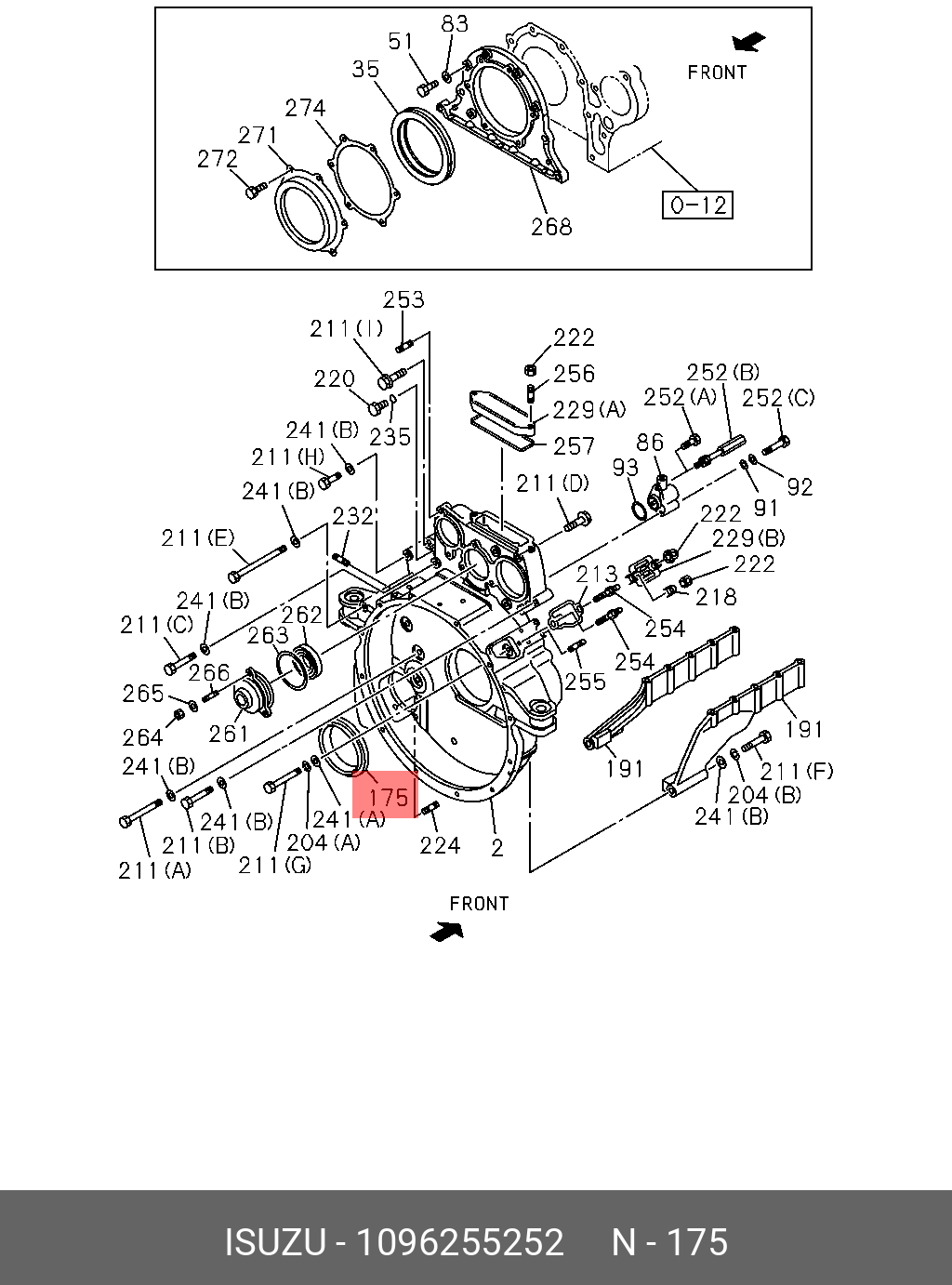 1096255252 ISUZU Заднее сальниковое уплотнение коленчатого вала 1-09625525-2