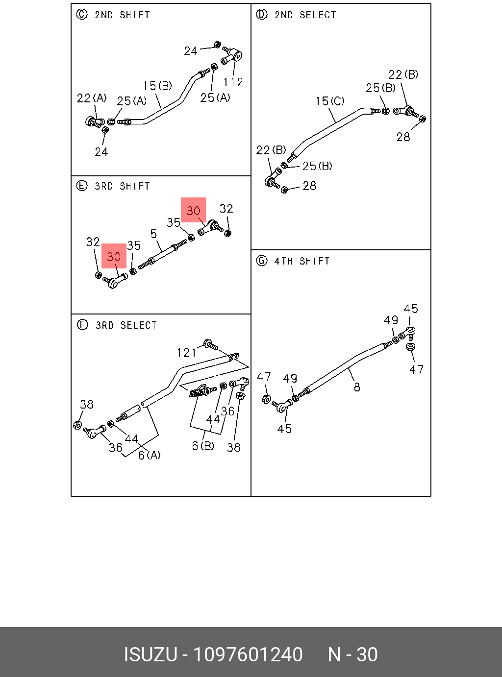 1097601240 ISUZU Шаровая головка рычага переключения передач 1-09760124-0 lsuzu