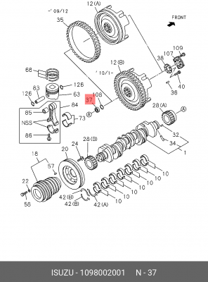 1098002001 ISUZU Направляющий подшипник маховика 1-09800200-1
