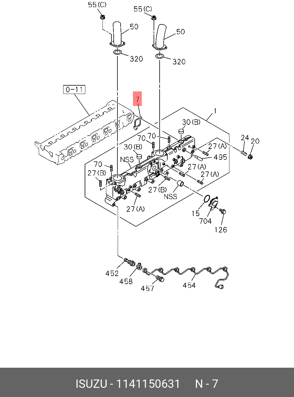 1141150631 ISUZU Прокладка впускного коллектора 114115-0631