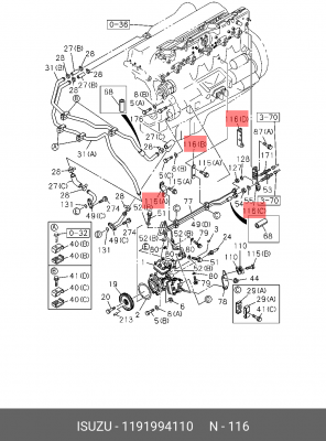 1-19199-411-0 ISUZU Кронштейн трубки впрыска топлива 119199-4110