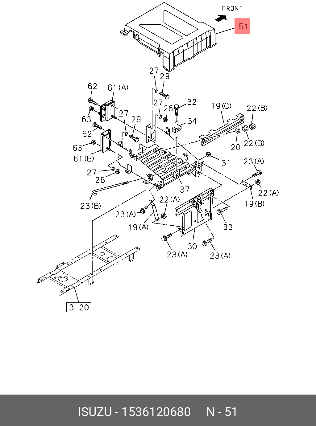 1536120680 ISUZU Крышка батарейного отсека 1-53612068-0 (china)