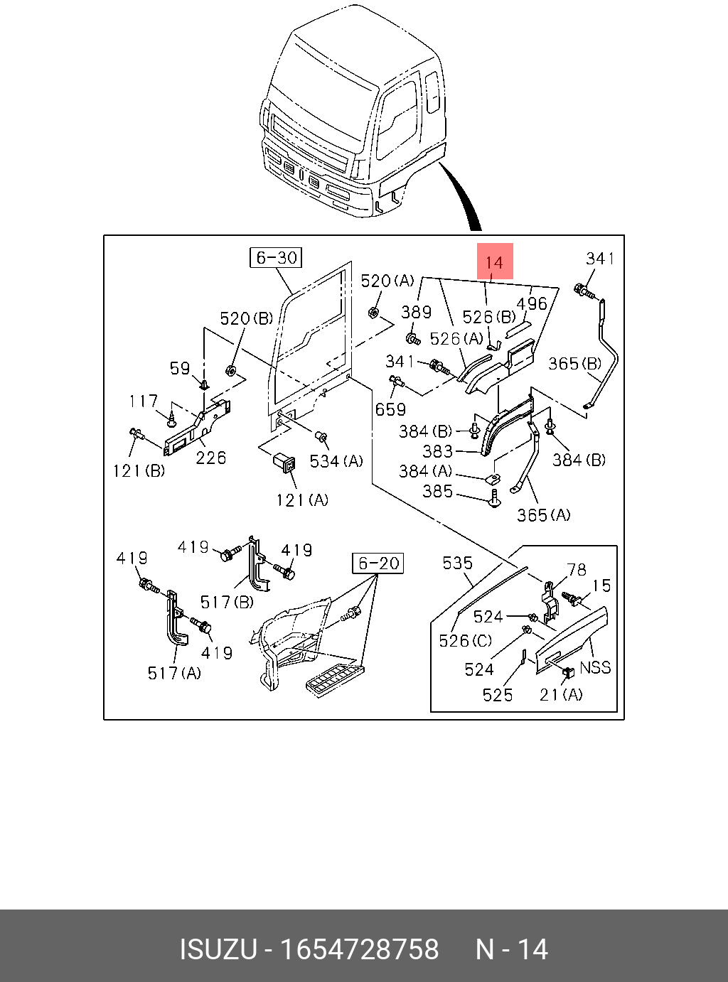 1-65472-875-8 ISUZU Нижняя отделка левого окна (новый номер) 1-65472875-8