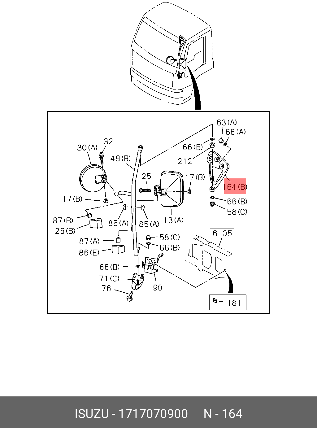 1-71707-090-0 ISUZU Кронштейн зеркала заднего вида верхнее сиденье (верхний правый) 1-71707090-0