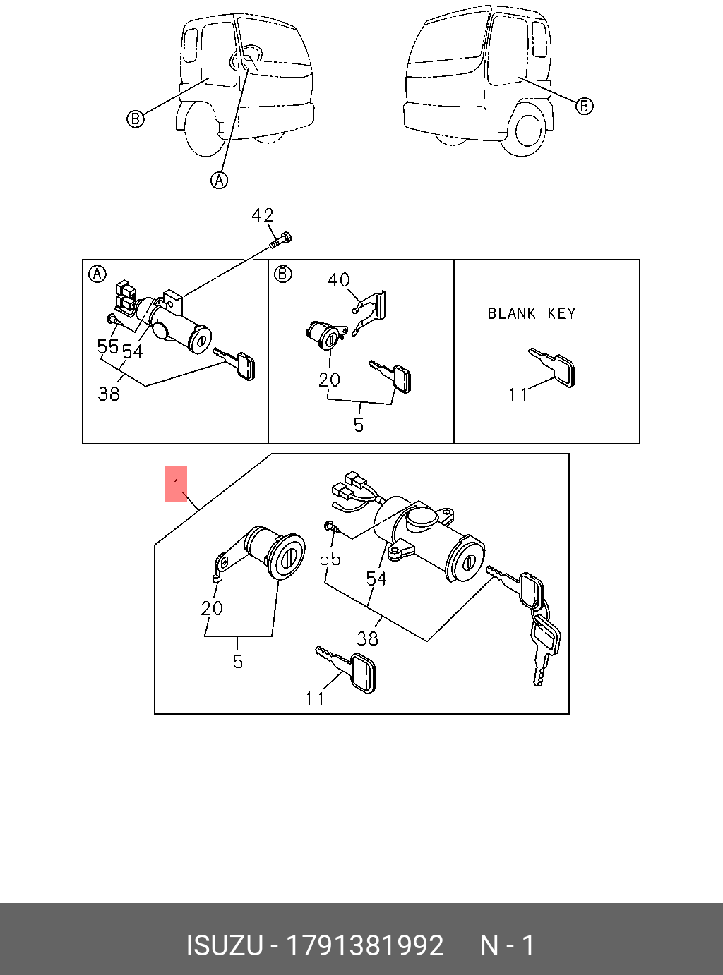 Название Полный автомобильный замок isuzu 1-79138199-2