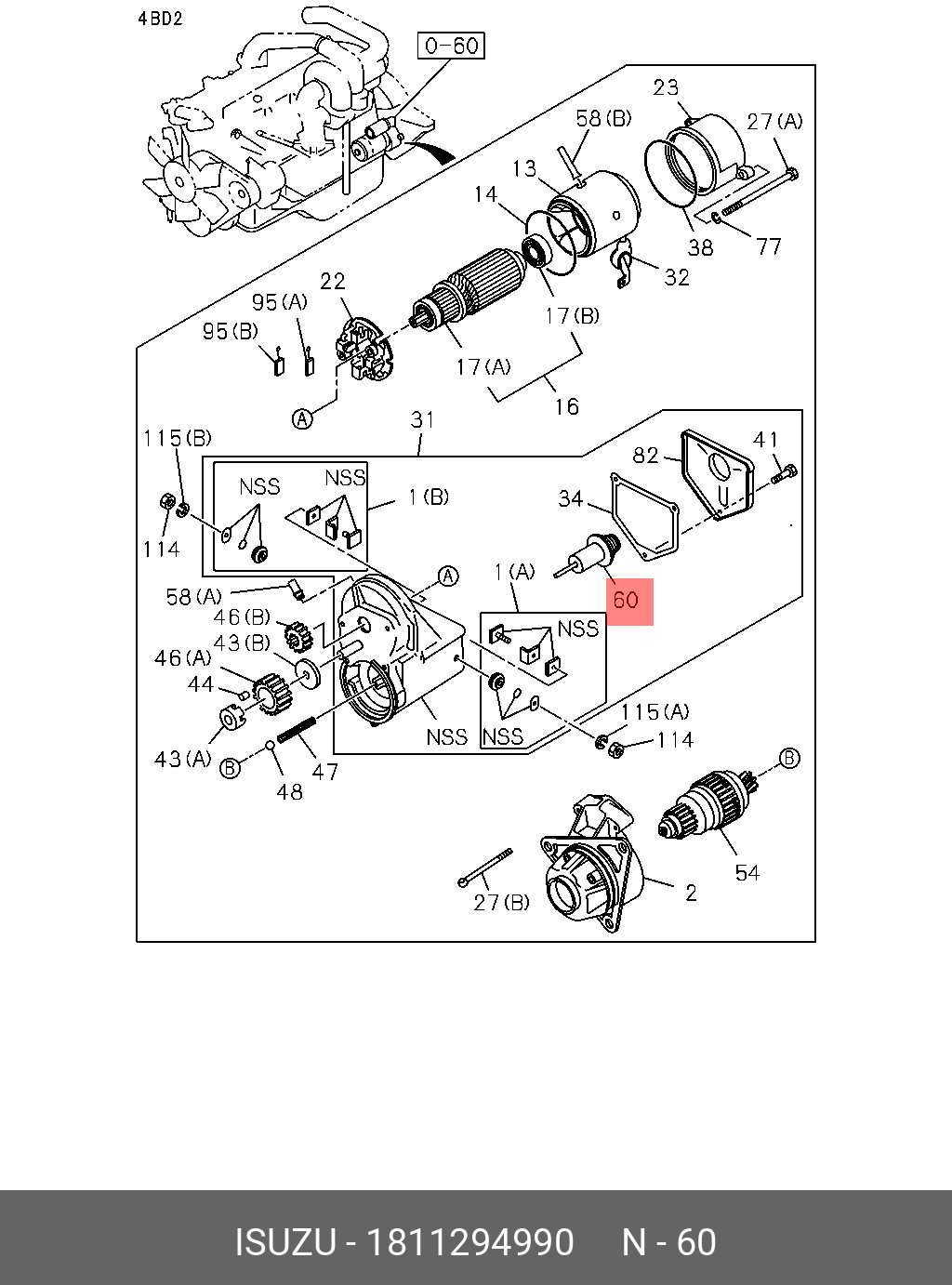 1-81129-499-0 ISUZU Сердечник втягивающего реле стартера szn3374he