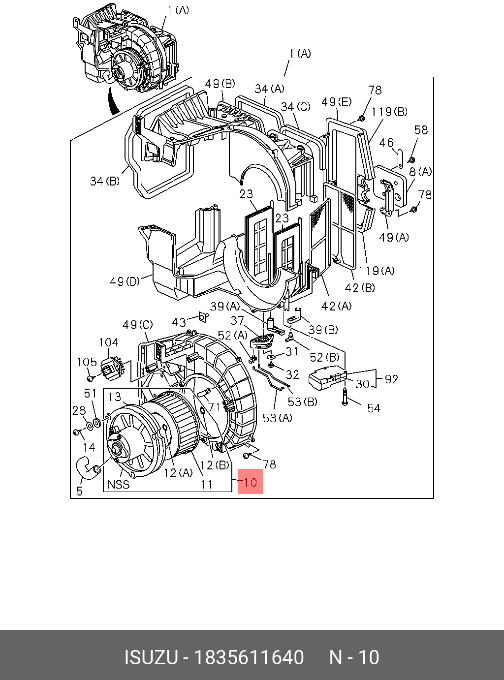 | Название | Двигатель отопителя 1-83561164-0 lsuzu |