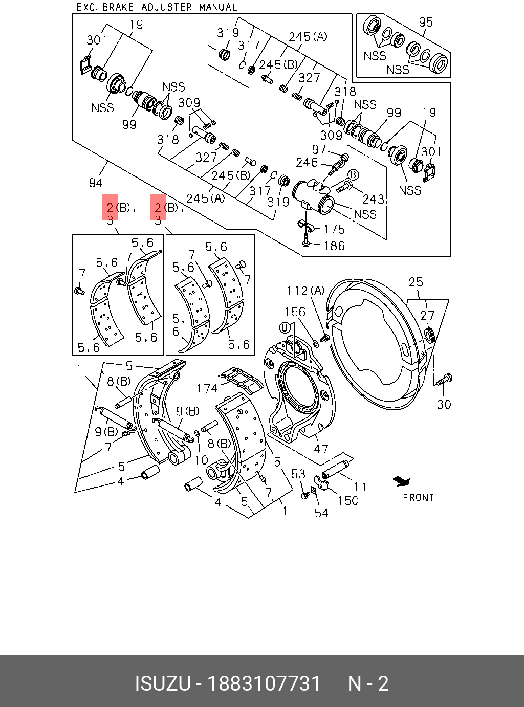 1883107731 ISUZU Накладка тормозная (STD) ISUZU FVR задняя (1 шт) (180x195x16; d6x17) "CM"