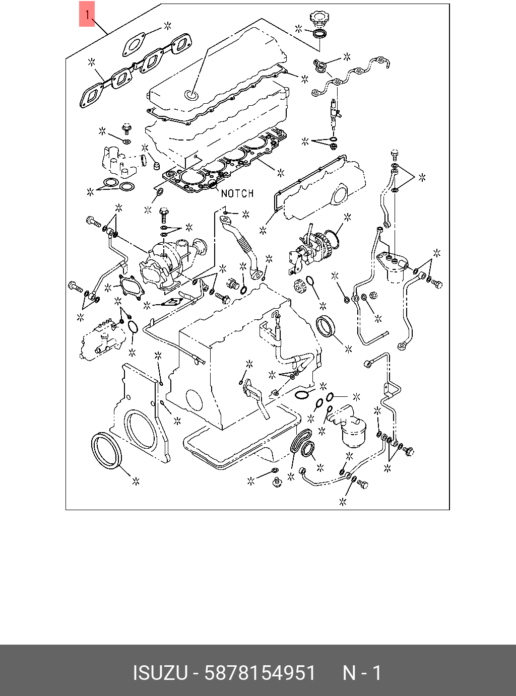 5-87815-495-1 ISUZU Комплект прокладок двигателя (4HG1-T)(T=1,525) ISUZU NQR71, полный (верх+низ) "C