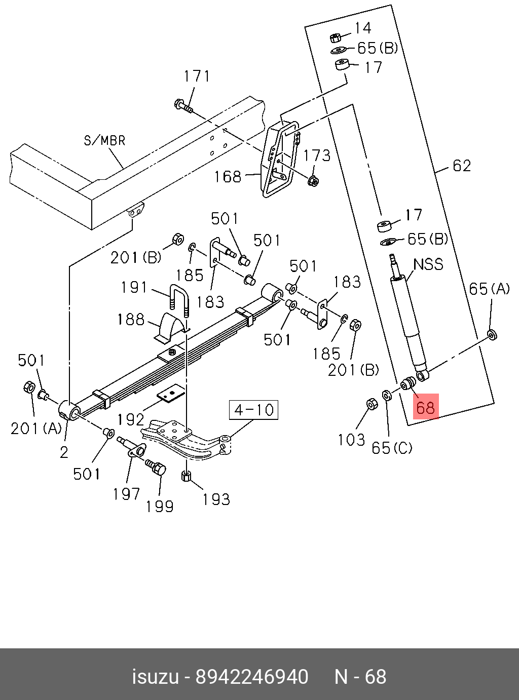 8-94224-694-0 ISUZU Втулка амортизатора ISUZU NQR71P (2007 - 2009) / ISUZU NQR75 (2008 - 2011) нижня