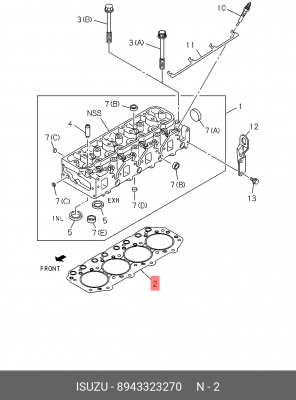 8-94332-327-0 ISUZU Прокладка ГБЦ 4JB1-TC (T=1.65) ISUZU NLR/NMR 55(LHD) 2008 - 2010 "CHINA", шт