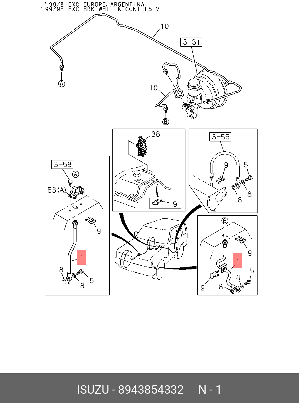 8-94385-433-2 ISUZU Шланг тормозной L=436mm, ISUZU TROOPER (UB) 3.1 TD/3,2 "ISUZU", шт