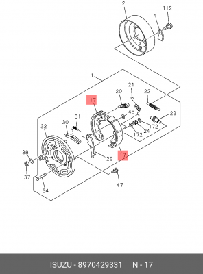 8-97042-933-1 ISUZU Колодки тормозные стояночного тормоза ISUZU NLR85,NKR55,JMC (2штуки) (35mm)"CHIN