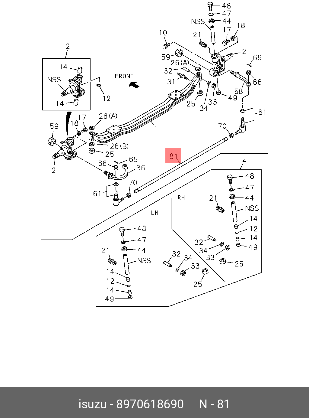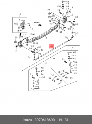 8-97061-869-0 ISUZU Тяга рулевая поперечная (без наконечников) ISUZU NQR 71,75,90, NPR75 "CHINA" (L1