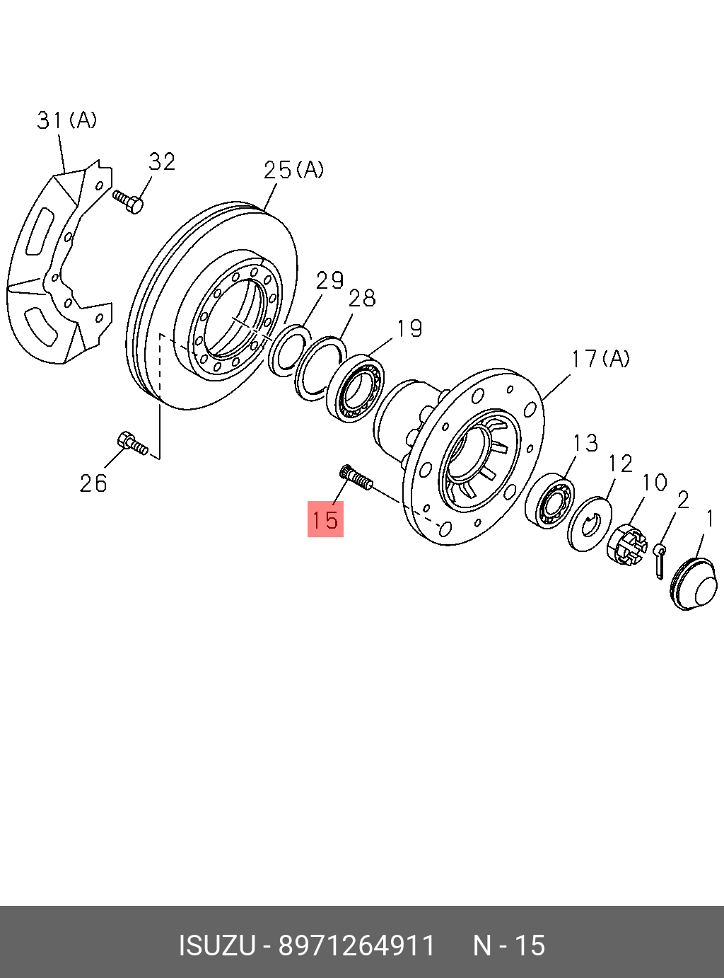 | Название | Шпилька ступ. перед. колеса левая ISUZU NLR-85 |