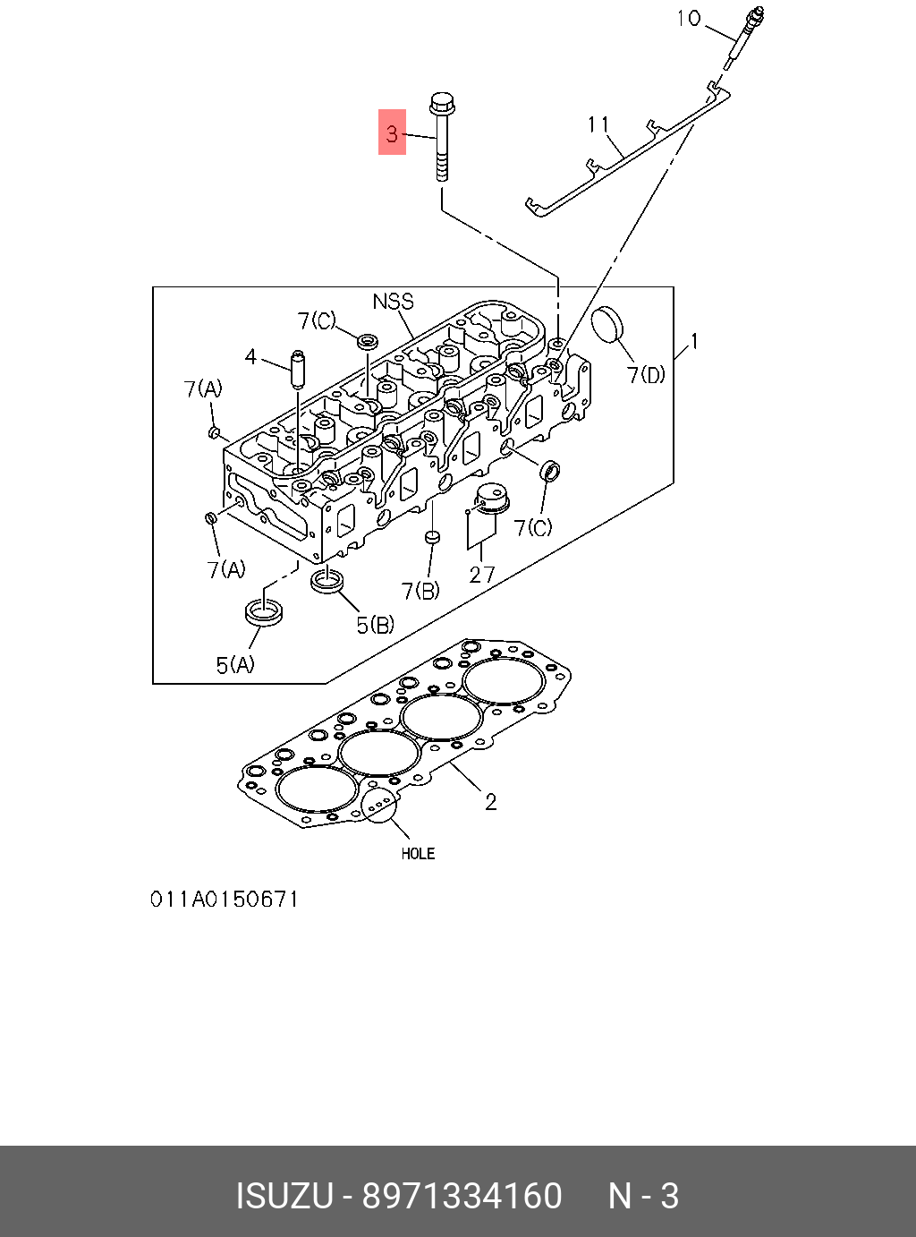8-97133-416-0 ISUZU Болт ГБЦ (M11X122) (4JB1) ISUZU NKR55 "CM"