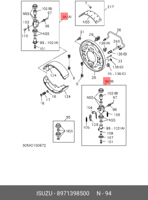 8-97139-850-0 ISUZU Цилиндр тормозной заднего левого колеса ISUZU NKR55(EUROPE)-LHD(99 - 02) "ISUZU"