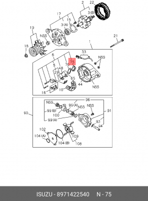8-97142-254-0 ISUZU Регулятор генератора + щеткодержатель