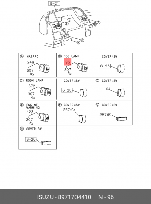 8971704410 ISUZU Выключатель противотуманых фонарей (кнопка) 24V ISUZU NPR/NQR LHDEXC.EURO4 2003
