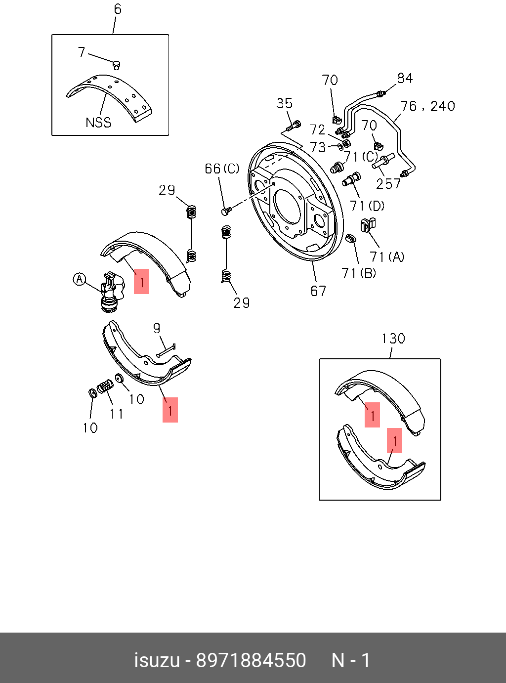 8971884550 ISUZU Колодка тормозная ISUZU NQR75 NPR75 пер/зад к-т на колесо 2шт