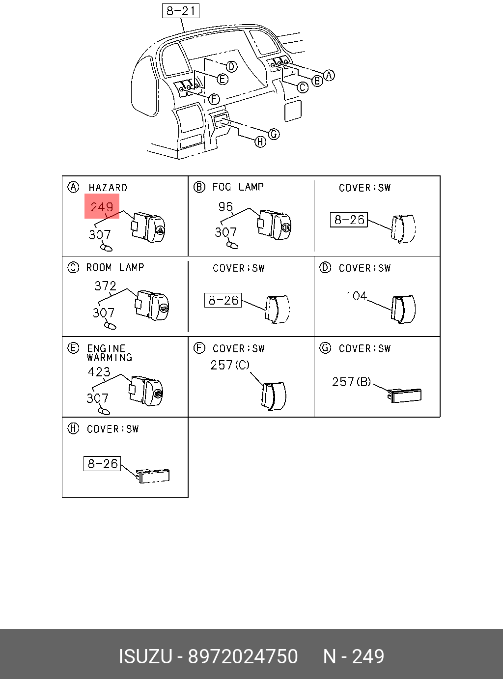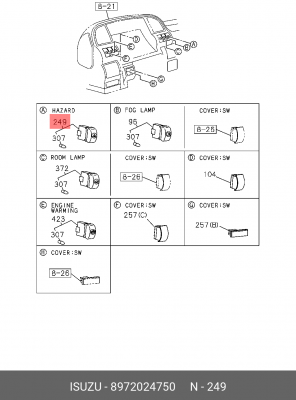 8972024750 ISUZU Кнопка аварийной сигнализации ISUZU-NQR71,ISUZU-NQR75