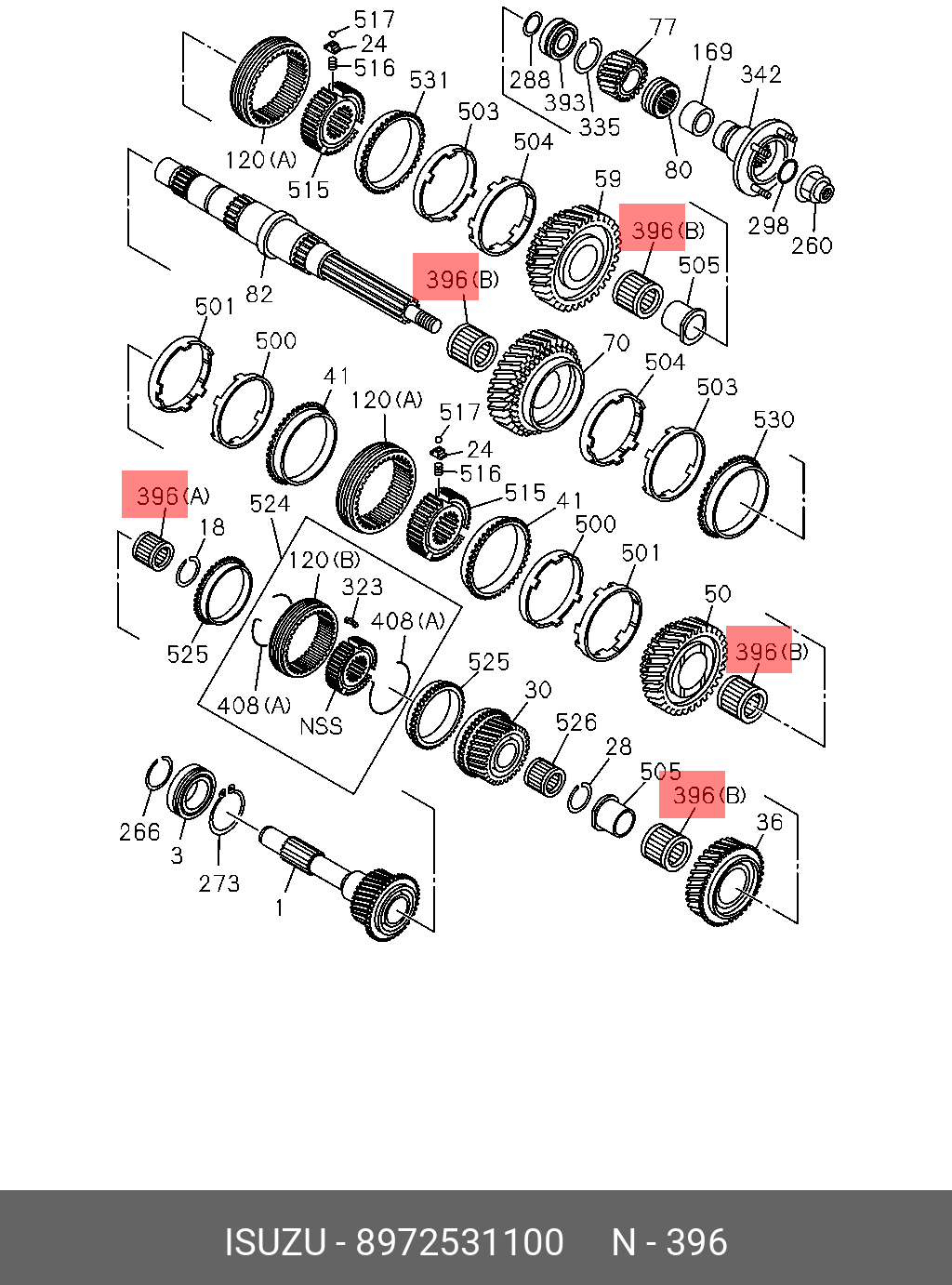 8-97253-110-0 ISUZU Подшипник игольчатый вала вторичного ISUZU NQR71P (2007 - 2009) / ISUZU NQR75 (2
