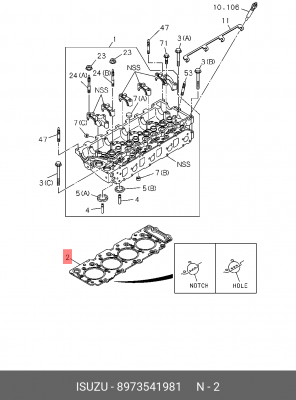8973541981 ISUZU Прокладка ГБЦ 4HE1,4HE1-T (Т=1.80) ISUZU NPR/NQR LHDEXC.EURO4 2003 -(2 метки/паз