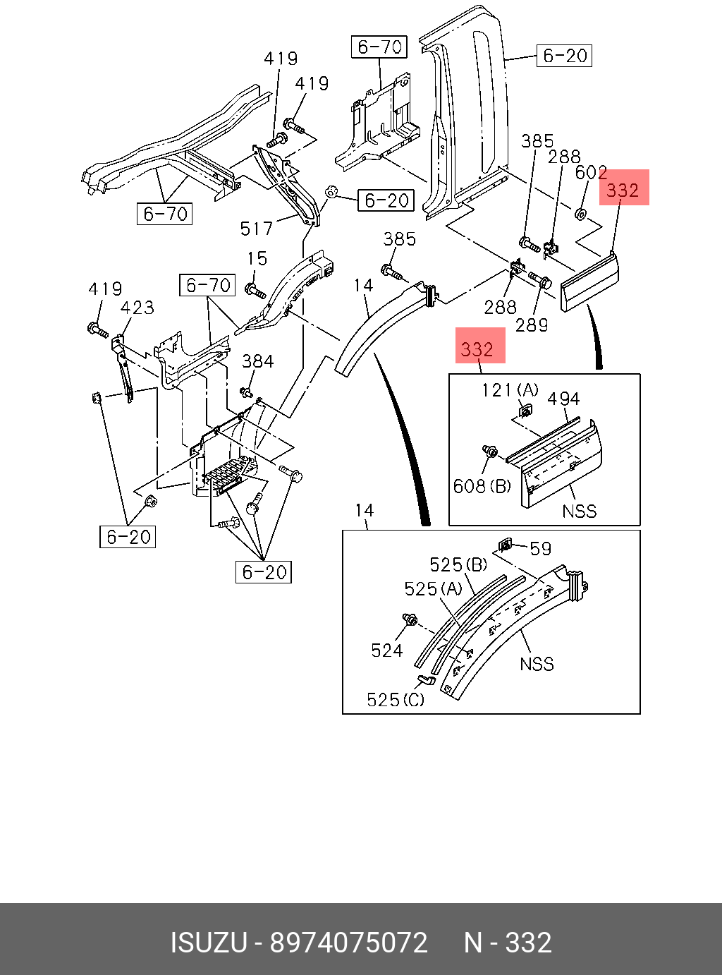 8-97407-507-2 ISUZU Накладка кабины боковая ISUZU FVR34 левая (белая) "QINGLING"