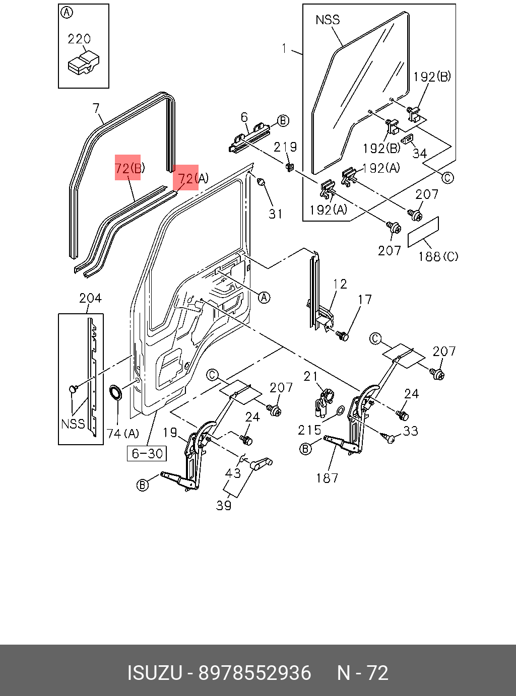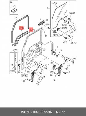 8978552936 ISUZU Уплотнитель стекла двери левый ниж. наруж. ISUZU NQR-71/75 (оригинал)