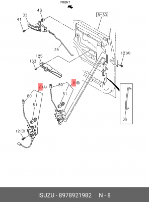8-97892-198-2 ISUZU Замок двери ISUZU NHR55/NKR66 (левой) "ISUZU"