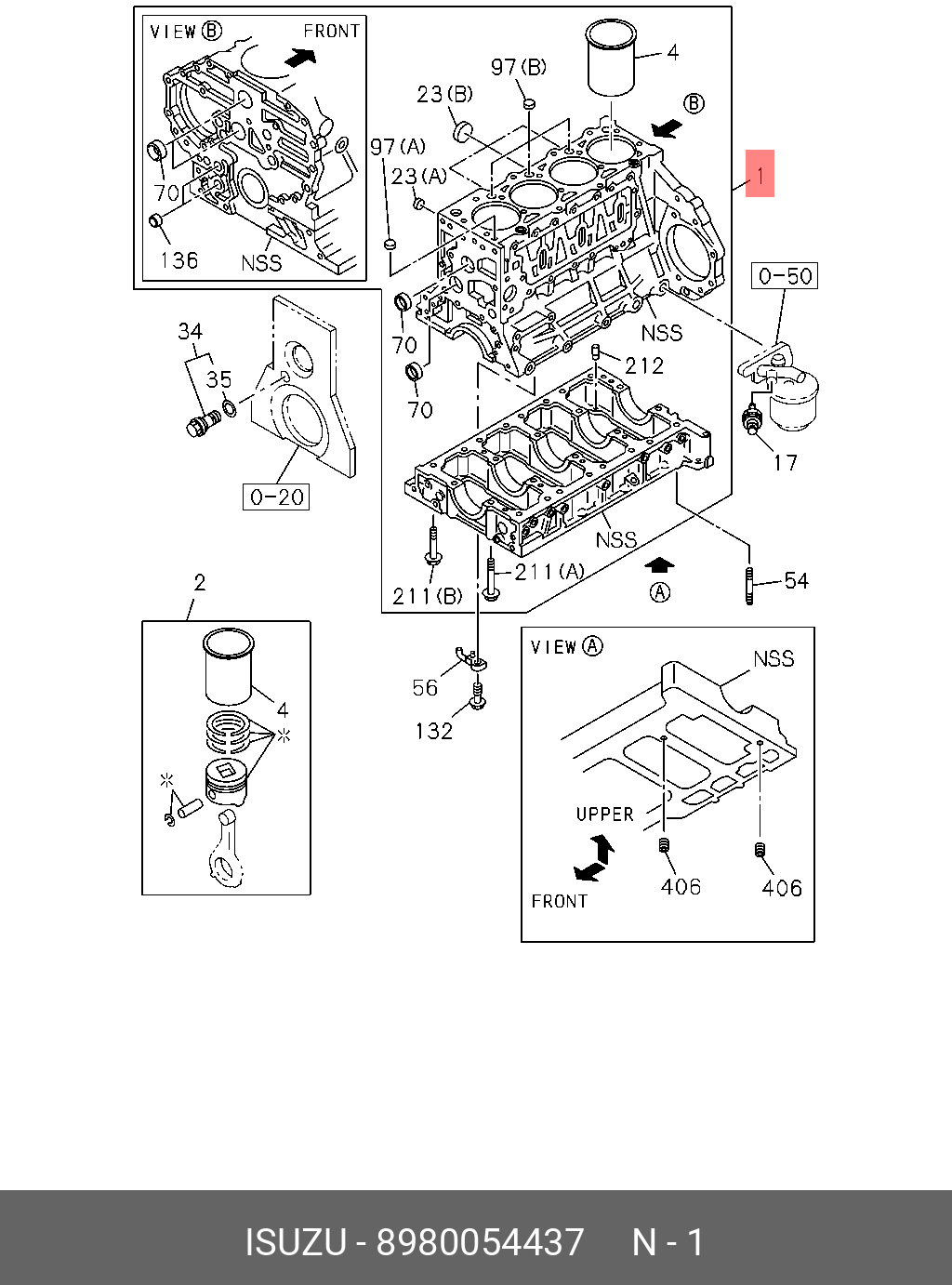 8-98005-443-7 ISUZU Блок цилиндра