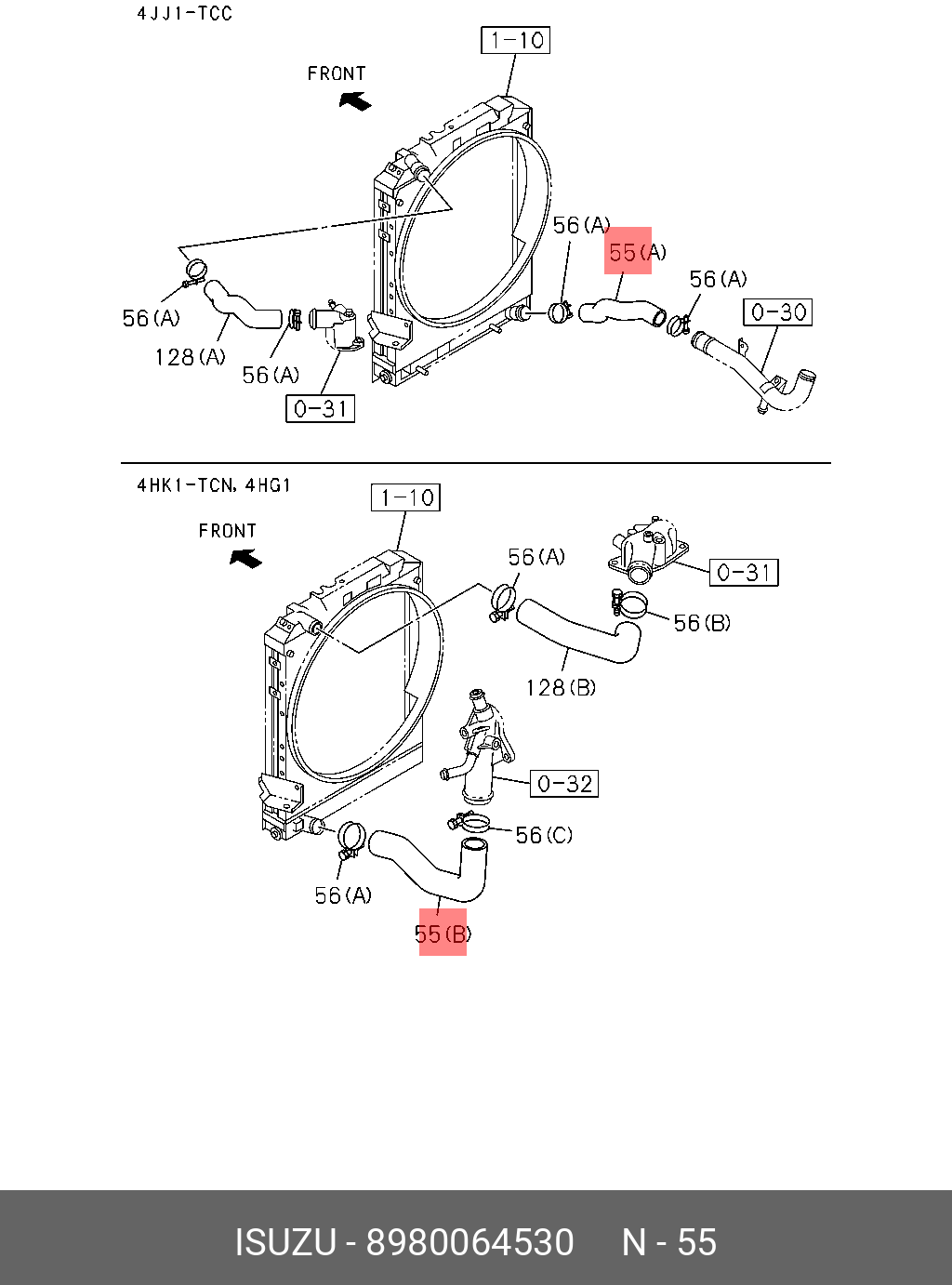 8-98006-453-0 ISUZU Патрубок радиатора выпускной 4HK1-T ISUZU NQR90 "ISUZU"