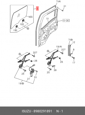 8-98029-189-1 ISUZU Стекло двери ISUZU FSR, FRR правой"CHINA", шт