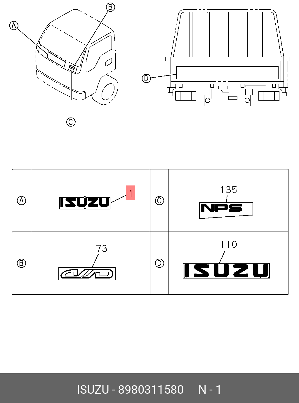 Название Эмблема кабины передняя "ISUZU" "CM"