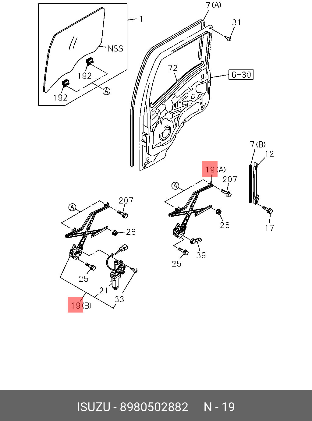 8980502882 ISUZU Стеклоподъемник двери правой (электрический, c мотором) ISUZU NPR75/NQR90/NLR85/