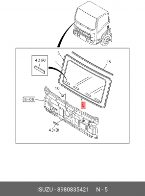 8-98083-542-1 ISUZU Уплотнитель лобового стекла нижний ISUZU NPR-75/NQR-90 (оригинал)