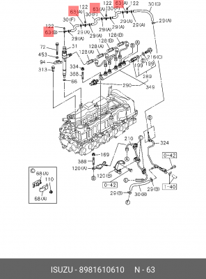 8-98161-061-0 ISUZU Топливопровод перелива в сборе 898161-0610