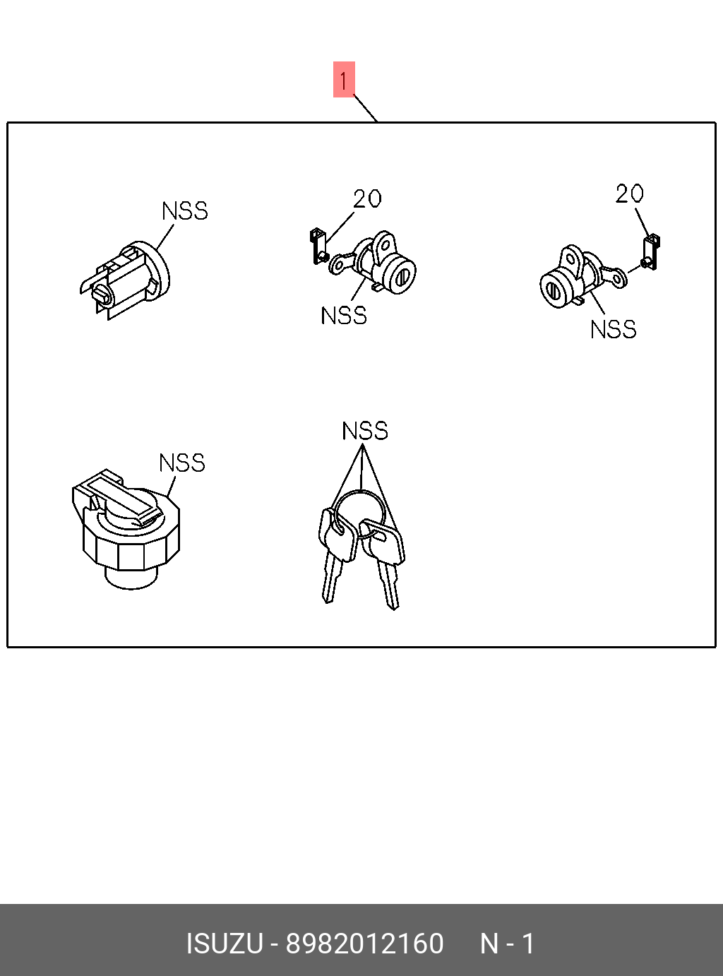 8982012160 ISUZU Личинки замка зажигания(1шт) и дверей(2шт)+ крышка топливного бака ISUZU FSR(LHD