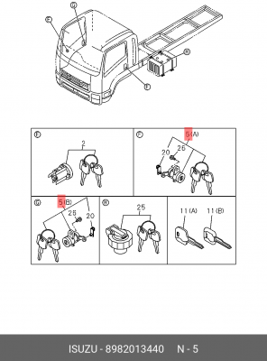 8982013440 ISUZU Личинка замка двери (L-R) к-т 2шт на ISUZU