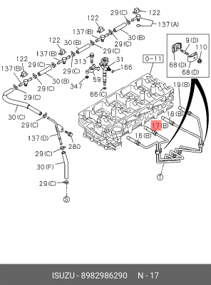 8982986290 ISUZU Трубка топливная 4HK1 (второго цилиндра) ISUZU NQR90/NPR75/FSR90 оригинал