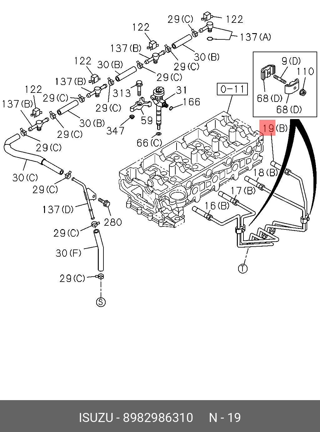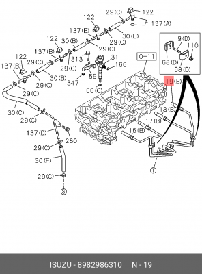 8982986310 ISUZU Трубка топливная 4 оригинал