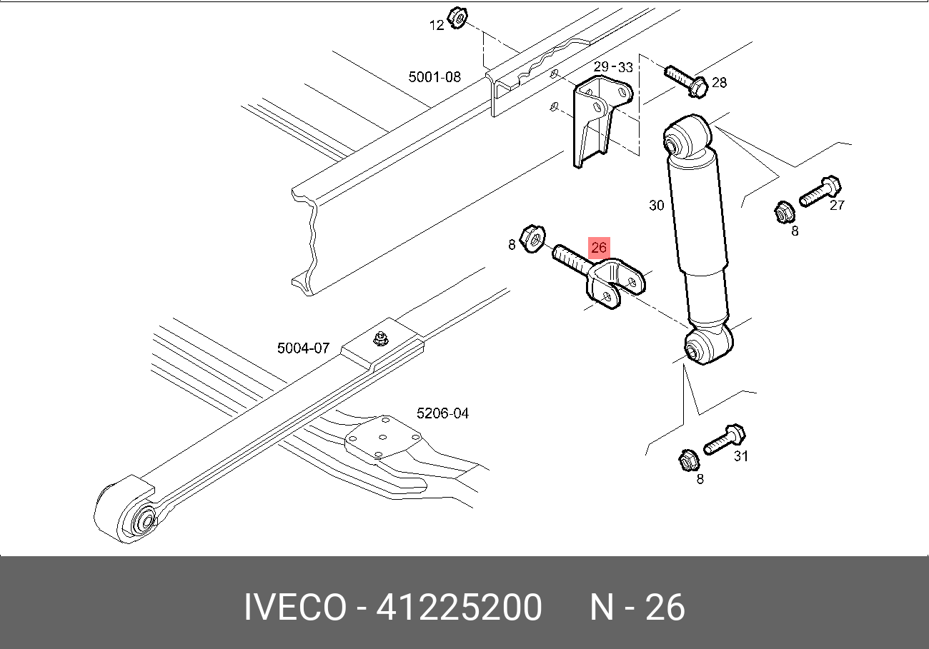 41225200 IVECO кронштейн переднего амортизатора нижний M20