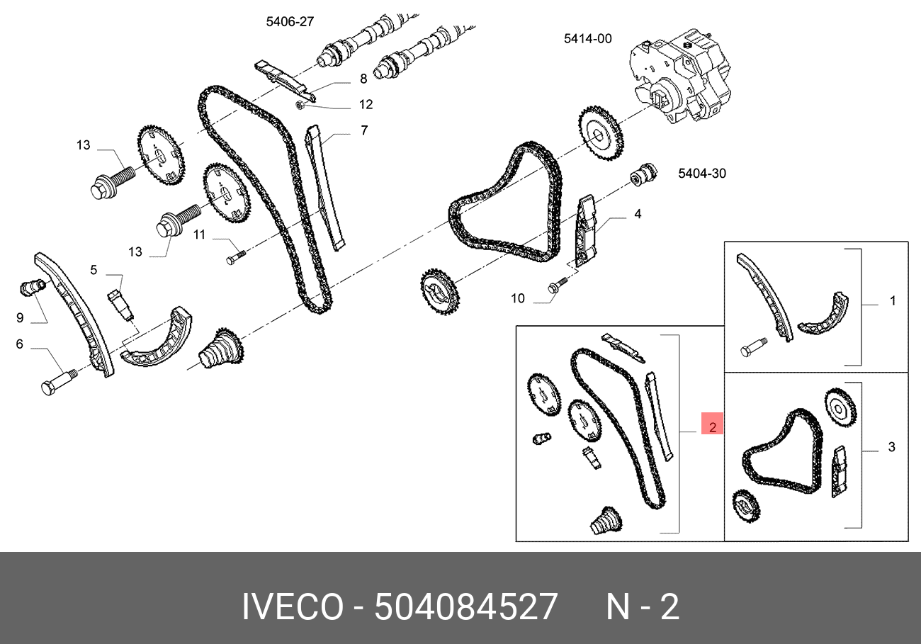 504084527 IVECO Комплект ГРМ IVECO/FIAT3.0DF1CE0481A/B/H(16предметов)2005-15г.