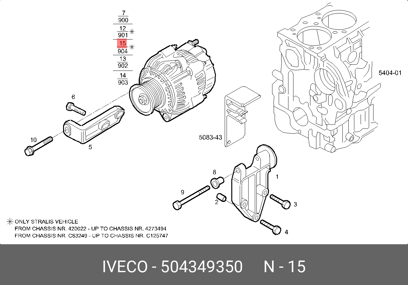 504349350 IVECO Генератор cо шкивом 12 ручьев alb1633an